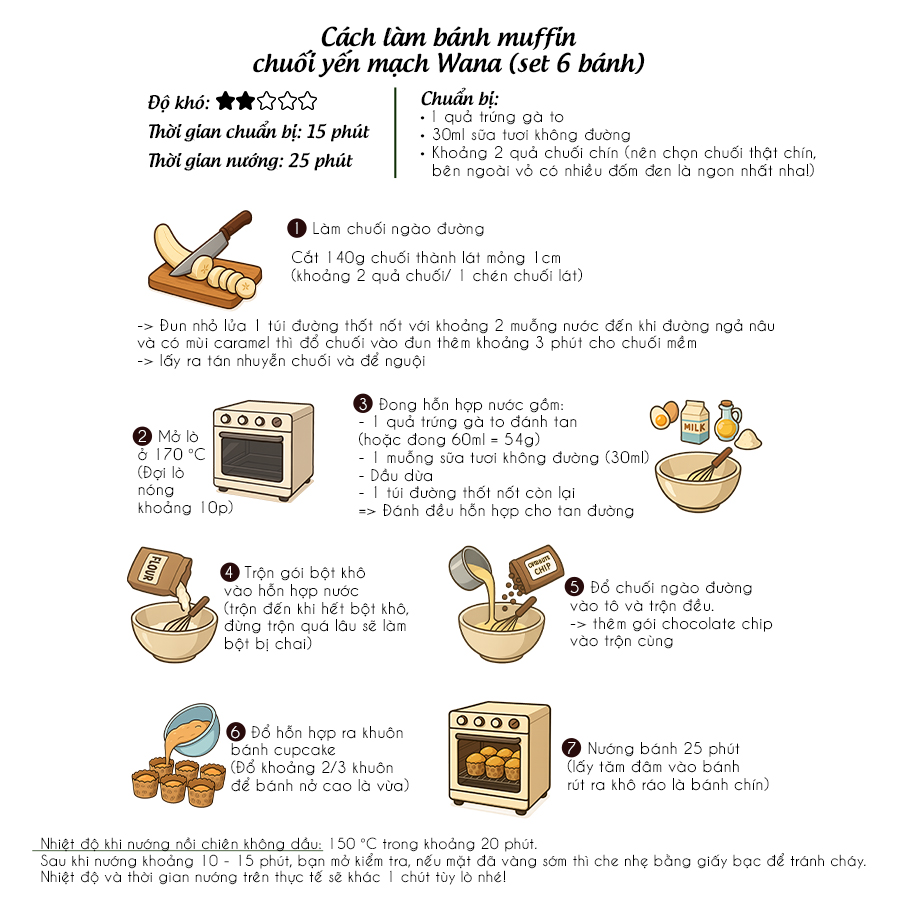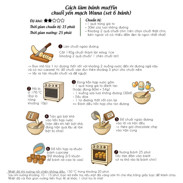– Set làm bánh muffin chuối yến mạch ăn kiêng làm được 6 bánh/ 12 bánh.