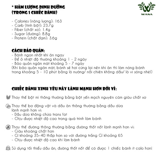 – Mỗi chiếc bánh đều được tính hàm lượng dinh dưỡng kỹ càng (chỉ 163 calo/ 1 chiếc bánh)